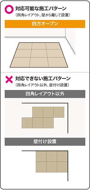 ●規格サイズのフロア畳(83cm╳83cm)のみ対応しています。特注サイズには対応していません。ご注意ください。